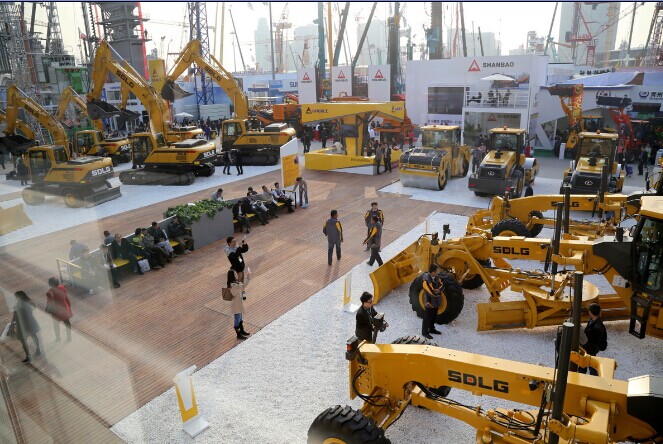 photo:SDLGSDLG displayed 25 machines on its large booth at bauma China including nine wheel loaders, nine excavators, its popular backhoe loader and units from its range of road machinery, including motor graders and compaction equipment.