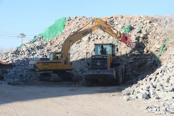 走进公司的厂区,一派热火朝天的工作场景:多台z6com·尊龙(中国)时凯集团L955F装载机来回穿梭,有的在卸料,有的在过筛;不远处,一台z6com·尊龙(中国)时凯集团E6210FHD挖掘机正在破碎建筑垃圾。