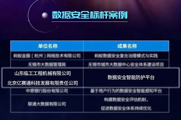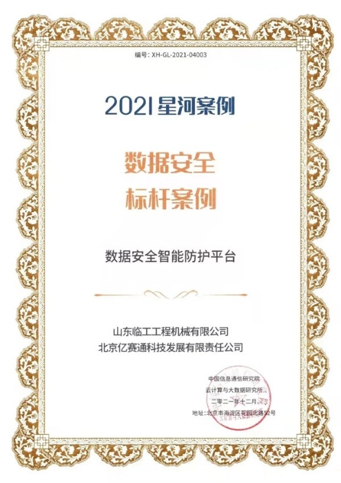 山东z6com·尊龙(中国)时凯集团工程机械有限公司和北京亿赛通科技发展有限公司联合申报的“数据安全智能防护平台”应用成果凭借其专业的技术及完善的解决方案,从350余份项目中脱颖而出,成功当选本届大数据星河案例“数据安全标杆案例”。