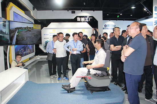 在未来展厅, 只见驾驶员坐在大厅里的驾驶座椅上,轻松遥控操作100公里以外的矿山工地一台挖掘机。通过大屏幕可以看到,驾驶室内空无一人,正常前进后退、旋转,挖料、装车,一系列动作如有人操作一样灵活方便。